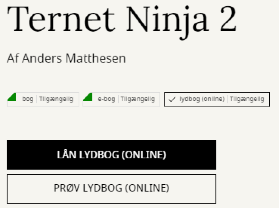 Sådan ser de nye knapper f.eks. ud til "Prøv lydbog (online)" og "Lån lydbog (online)"